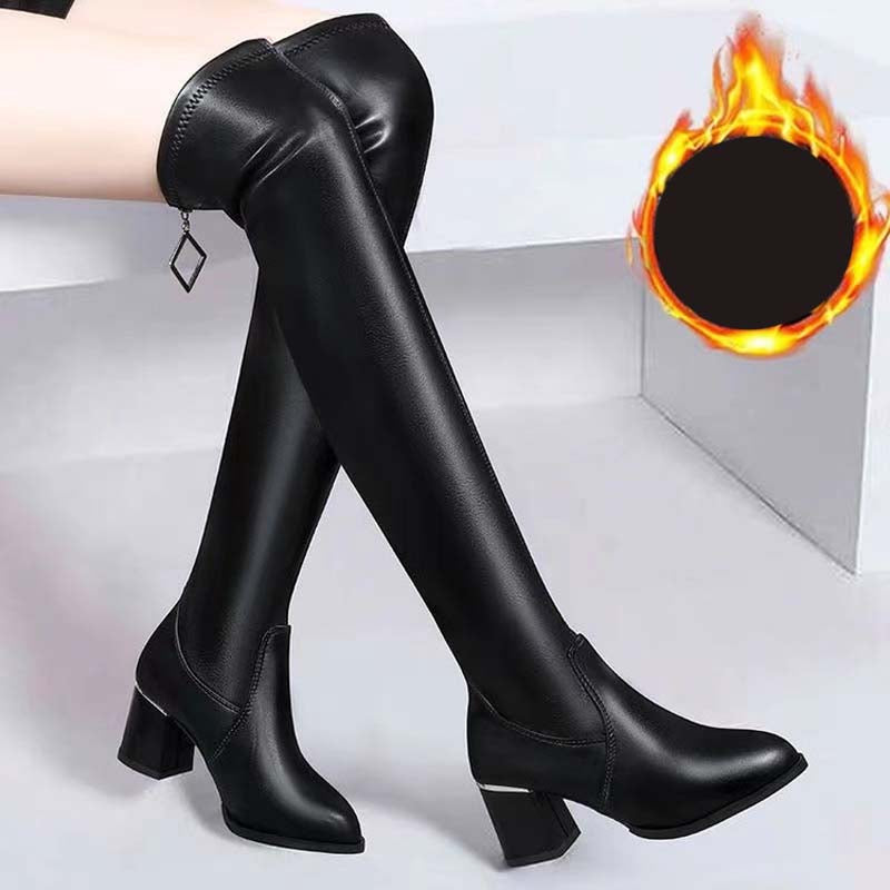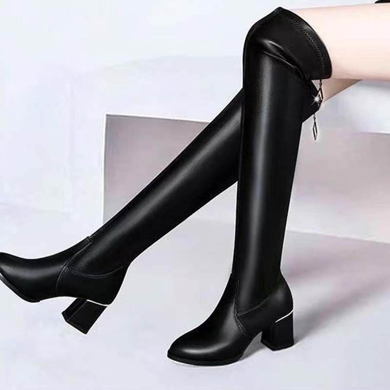 Contenu du colis : 1 Paire de bottes noires au-dessus du genou avec talon