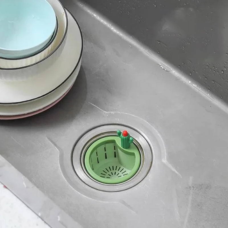 Gardez votre évier propre sans effort avec le Filtre à Évier de Cuisine en Forme de Cactus - appuyez simplement sur la passoire et éliminez le désordre avec style !