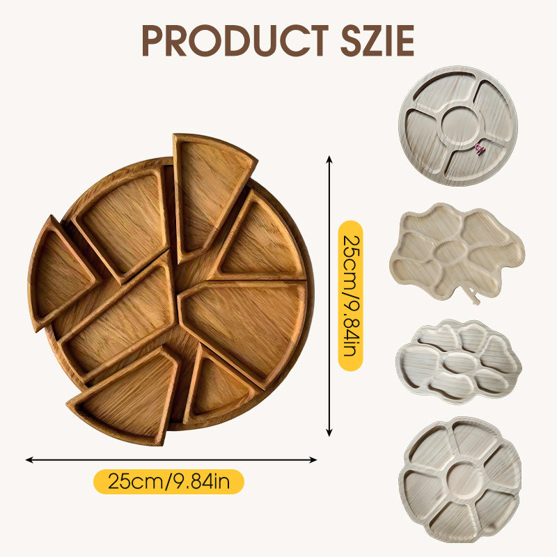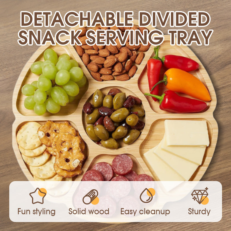 COMPARTIMENTS AMOVIBLES – Les sections amovibles facilitent le service et le nettoyage. Chaque compartiment peut être retiré individuellement, vous permettant de recharger facilement les snacks ou de séparer les aliments sans mélanger les saveurs. Ce design ingénieux aide à préserver la fraîcheur des aliments et simplifie le rangement lorsque le plateau n'est pas utilisé.