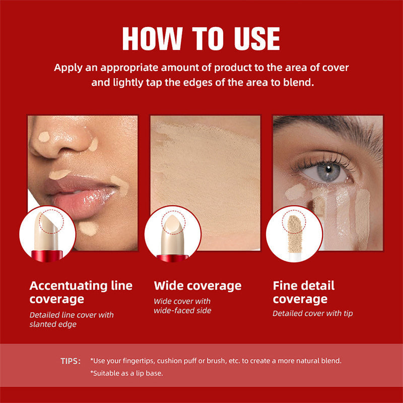 DUAL-ACTION DESIGN -Â Combines a liquid concealer and a concealer stick. Use the liquid for precise blemish coverage and the stick for blurring pores, giving you a complete solution in one product.