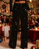 ✨ 60% DE RÉDUCTION ! 💃 Pantalon à Sequins Femme – Taille Élastique, Jambes Larges & Brillant de Mille Feux ⭐
