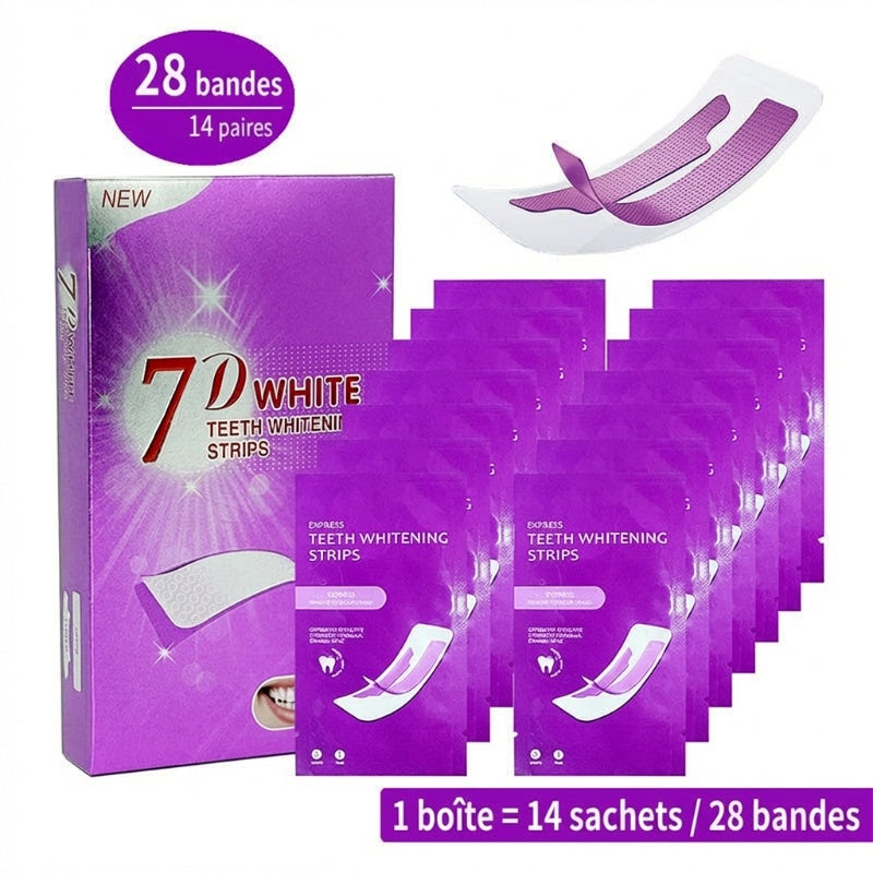 Le paquet contient (1 boîte) : 14/28 * Bandes blanchissantes pour les dents + Manuel d'utilisation + Nuancier de couleurs