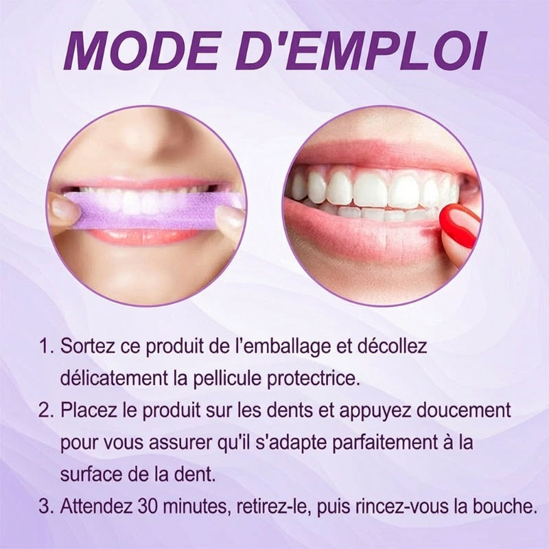 CORRECTION INSTANTANÉE DE LA COULEUR – En utilisant la théorie des couleurs, la teinte violette de ces bandes agit pour contrecarrer et neutraliser les sous-tons jaunes de vos dents. Cela procure un effet éclaircissant immédiat pour un sourire visiblement plus blanc après utilisation.